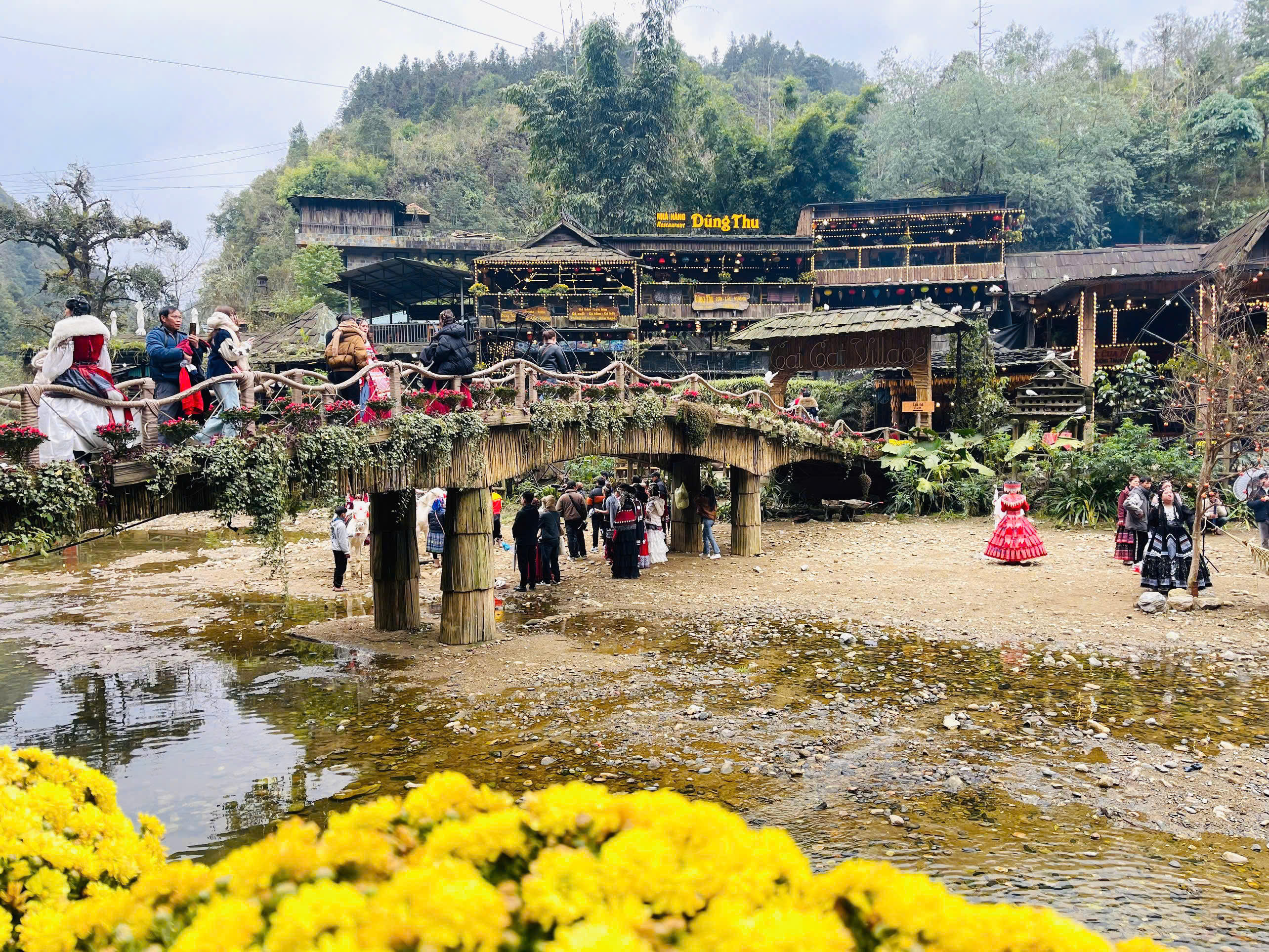 Du khách thích thú với kiến trúc của cầu "Tình Yêu" nơi các cô gái, chàng trai người H’Mông hẹn hò giao duyên qua điệu khèn, tiếng hát