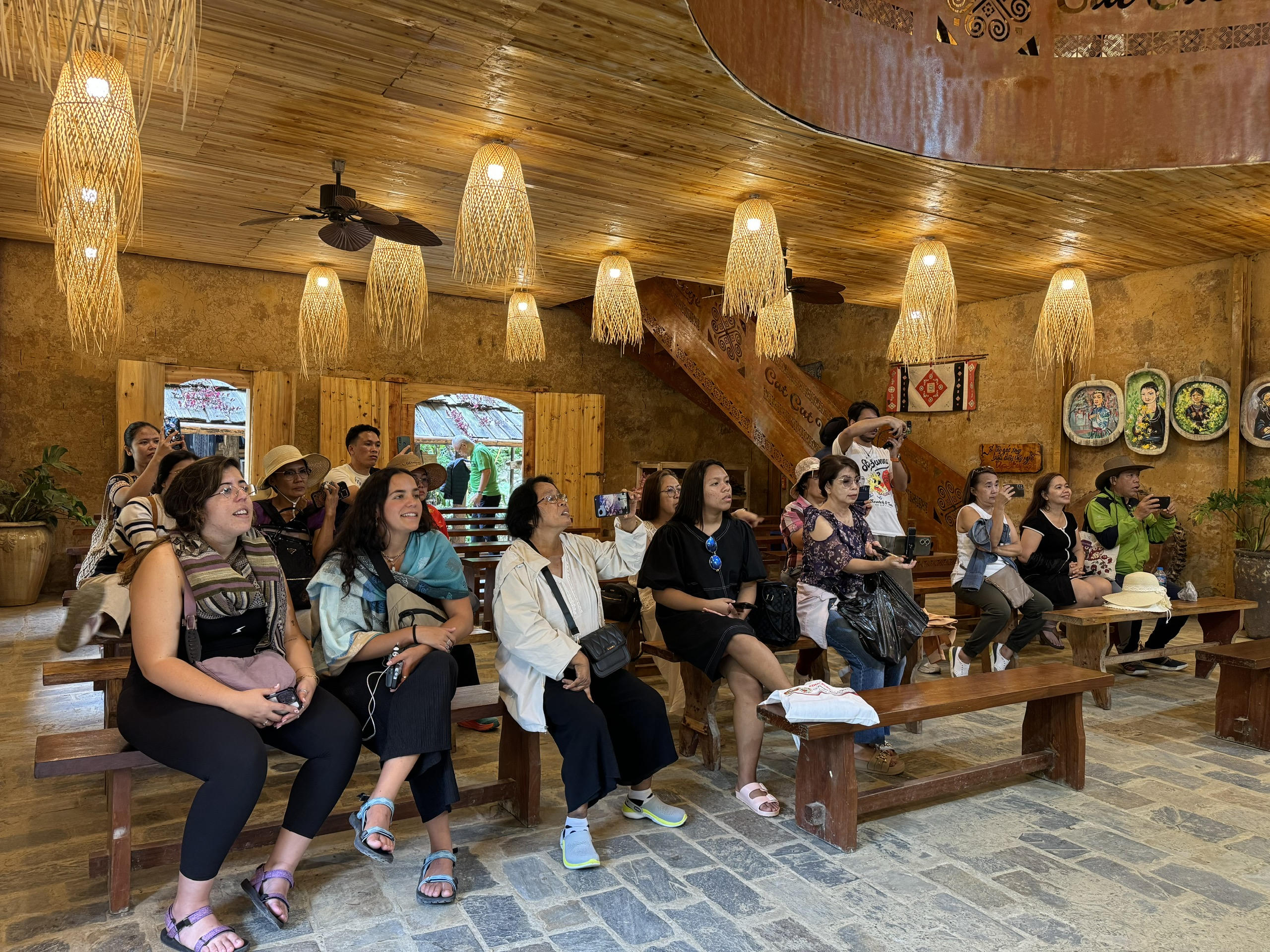 Du khách nước ngoài rất thích thú với không gian và con người nơi đây.