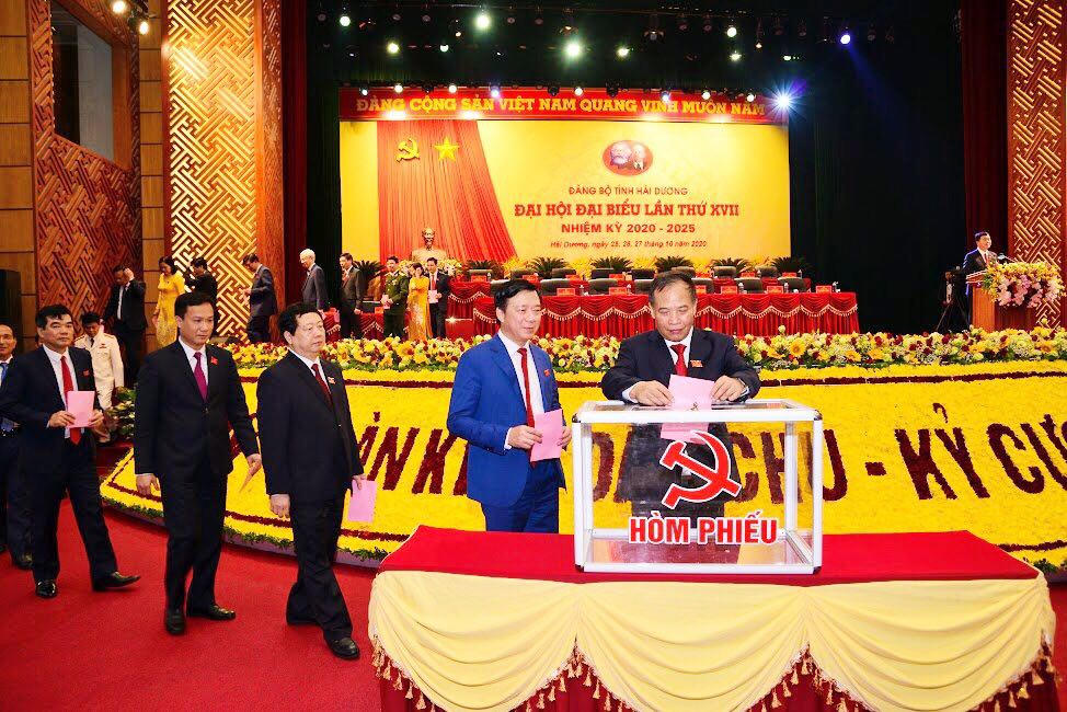 (PLVN) - Chiều nay (26/10), Đại hội đại biểu Đảng bộ tỉnh Hải Dương lần thứ XVII đã tiến hành bỏ phiếu bầu Ban Chấp hành Đảng bộ tỉnh khóa XVII nhiệm kỳ 2020 - 2025 gồm 52 đồng chí.