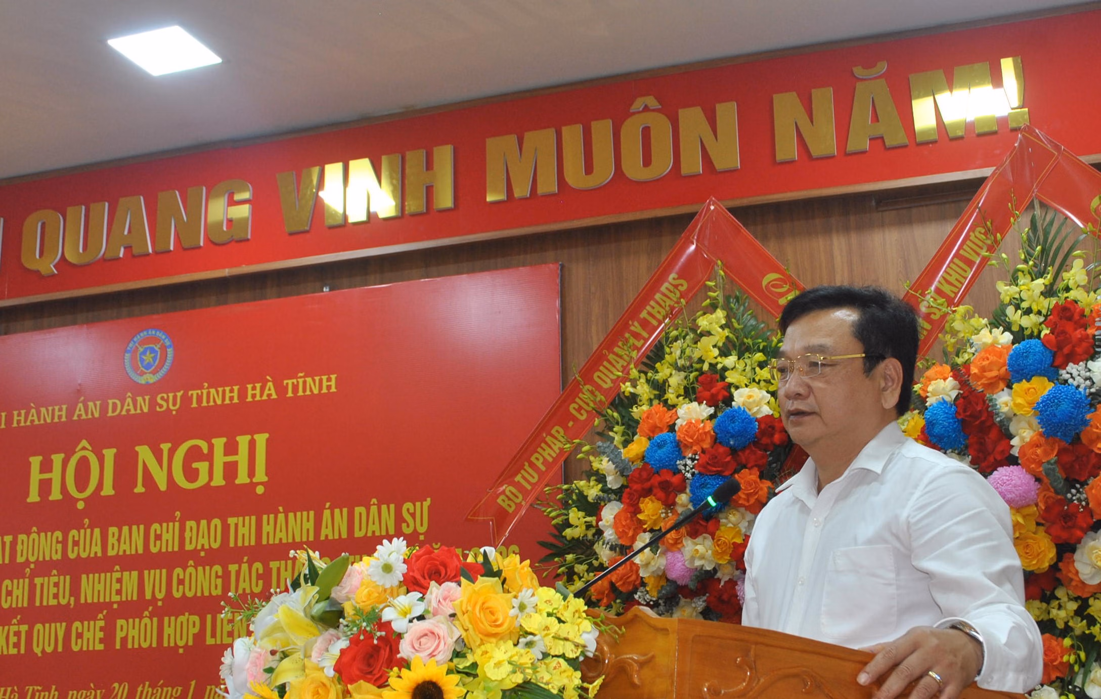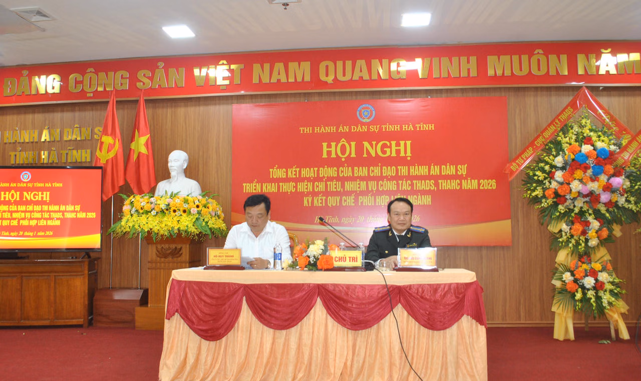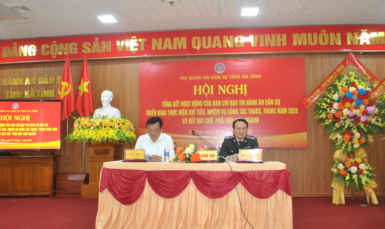 Phó Chủ tịch UBND tỉnh Hà Tĩnh khẳng định, trong bối cảnh nhiều yêu cầu mới đặt ra, Ban Chỉ đạo THADS tỉnh tiếp tục là “điểm tựa” điều phối, góp phần bảo đảm tính nghiêm minh của pháp luật, giữ vững ổn định xã hội và củng cố niềm tin của Nhân dân vào công tác thi hành án trên địa bàn Hà Tĩnh.