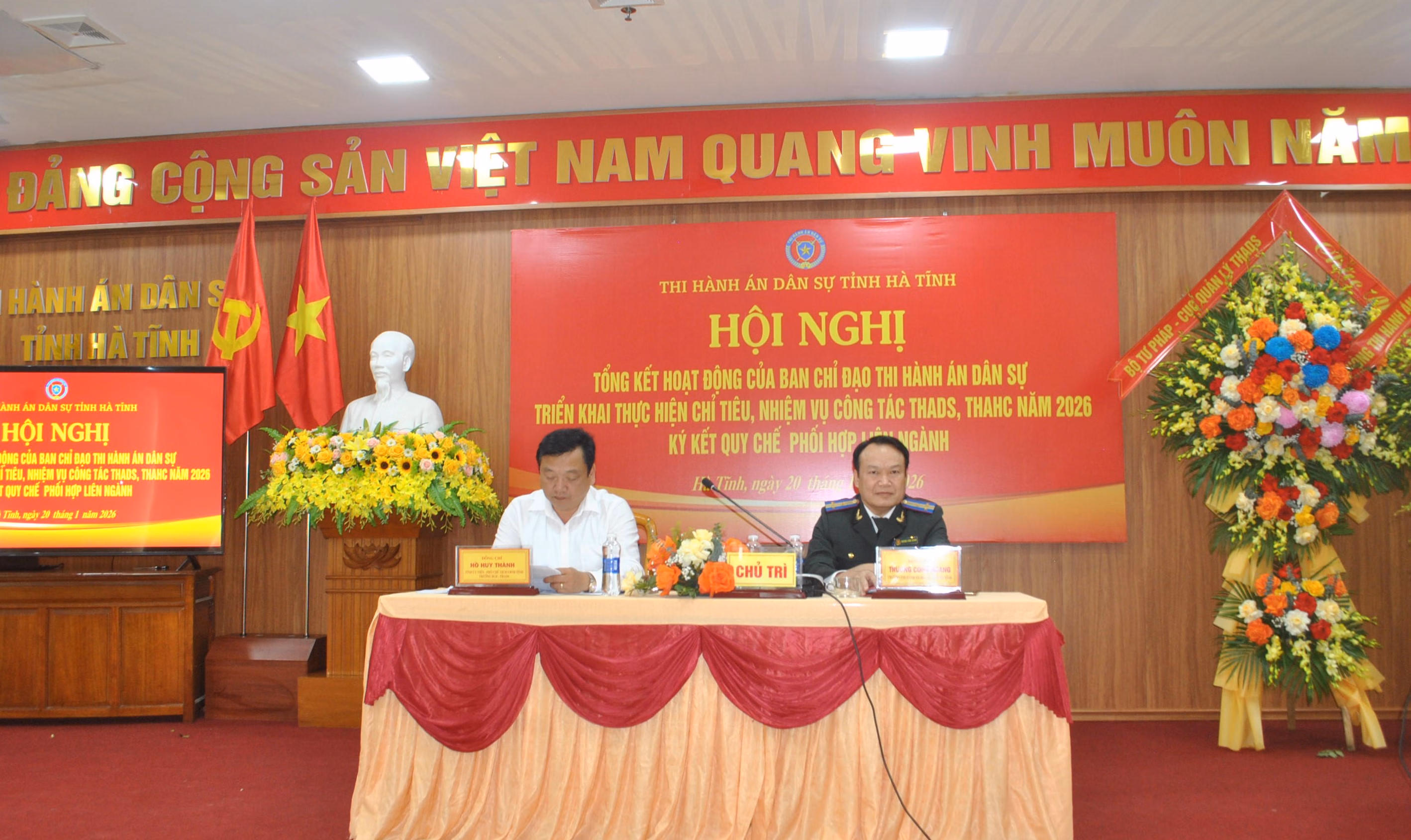 Báo cáo tại Hội nghị cho thấy, Ban Chỉ đạo THADS tỉnh Hà Tĩnh được thành lập và kiện toàn trên cơ sở các quy định pháp luật và hướng dẫn liên ngành, với sự tham gia của nhiều cơ quan trọng yếu như Công an, Tòa án, Viện kiểm sát, Tư pháp, Tài chính, Nông nghiệp và Môi trường, Bộ Chỉ huy quân sự tỉnh Hà Tĩnh, Ngân hàng Nhà nước Việt Nam chi nhánh khu vực 8, Kho bạc Nhà nước khu vực VII, Bảo hiểm Xã hội tỉnh…