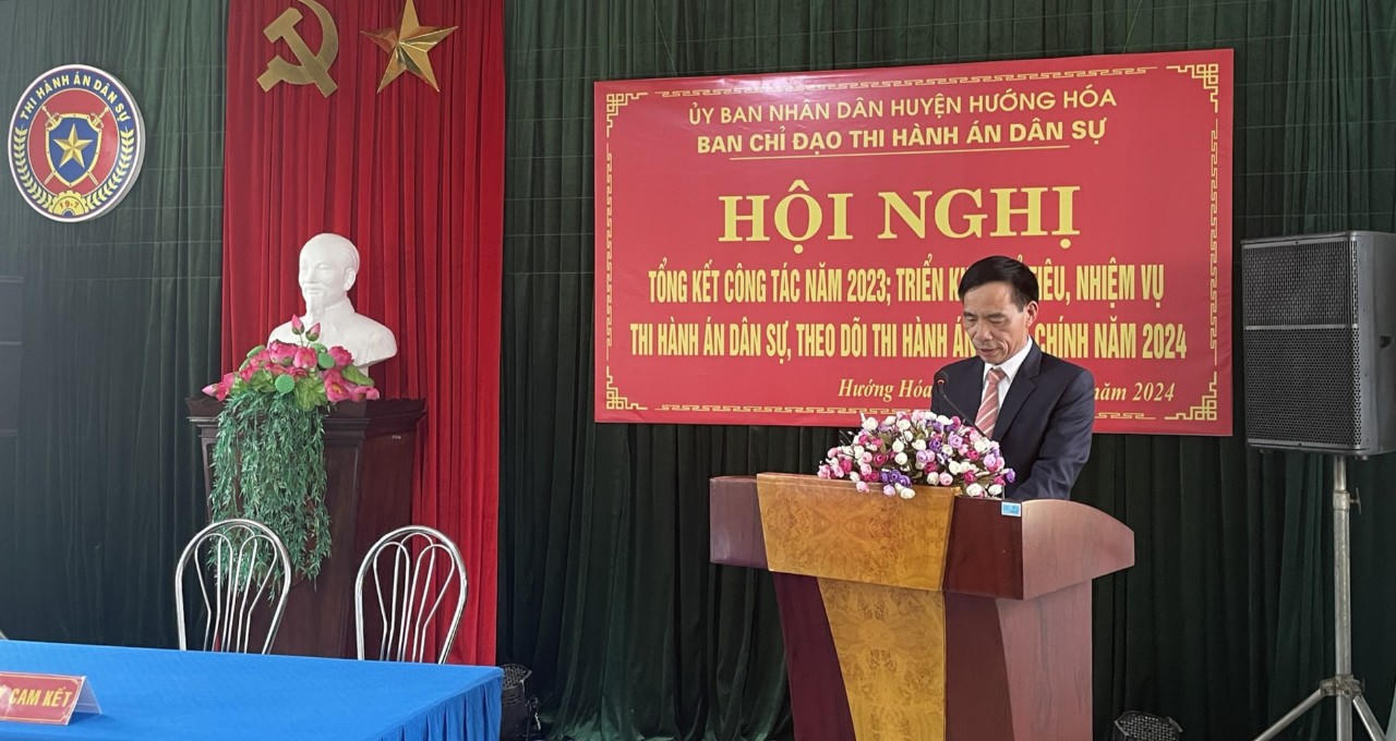 (PLVN) - Ban Chỉ đạo thi hành án dân sự huyện Hướng Hóa (tỉnh Quảng Trị) vừa tổ chức Hội nghị tổng kết công tác năm 2023 và triển khai chỉ tiêu, nhiệm vụ thi hành án dân sự (THADS), theo dõi thi hành án hành chính năm 2024.