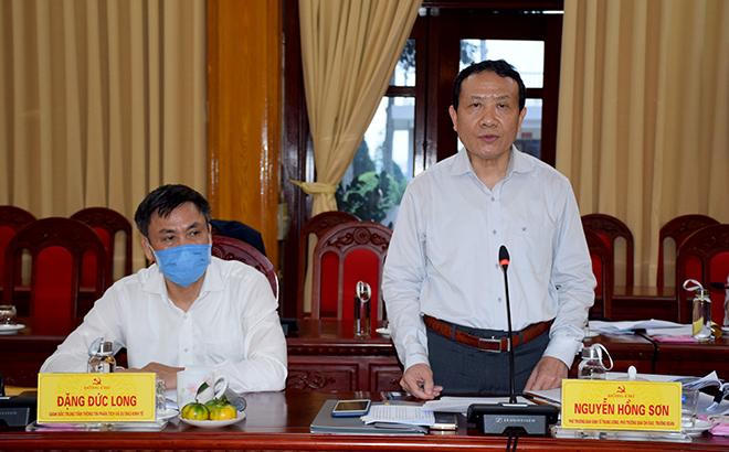 Ông Nguyễn Hồng Sơn, Phó trưởng ban kinh tế TW, Trưởng đoàn công tác phát biểu tại buổi làm việc với tỉnh Yên Bái. |