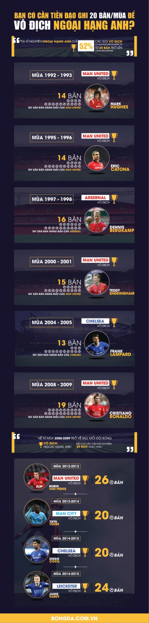 Bạn có cần tiền đạo ghi hơn 20 bàn/mùa để vô địch? Nhờ sự tỏa sáng rực rỡ của Robin van Persie, một đội hình không phải là mạnh của Man United đã vô địch Ngoại hạng Anh mùa 2012/13. Thứ Bảy 26/11/2016 08:25 (GMT+7)