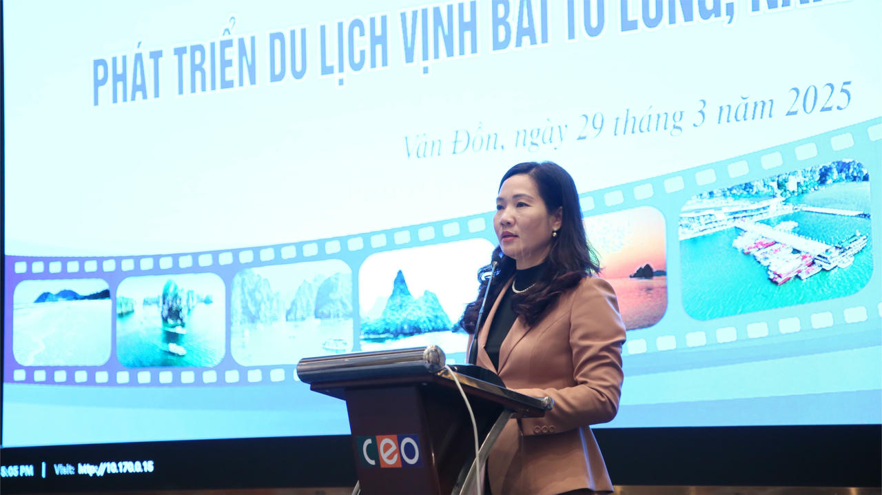| Bà Nguyễn Thị Hạnh - Phó Chủ tịch UBND tỉnh Quảng Ninh phát biểu tại Hội nghị Phát triển Du lịch vịnh Bái Tử Long năm 2025. |