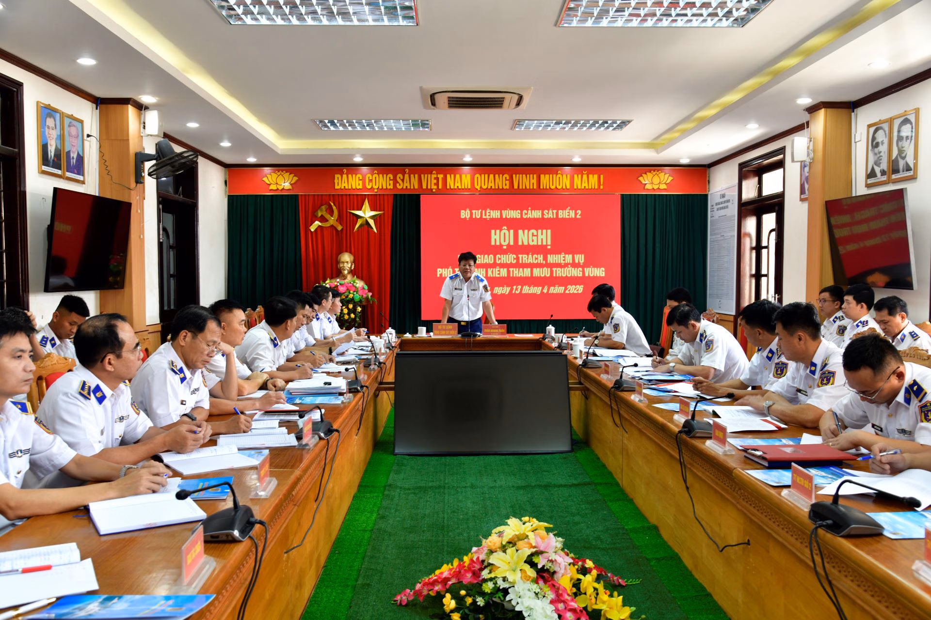 Thiếu tướng Trần Quang Tuấn, Tư lệnh Bộ Tư lệnh Vùng Cảnh sát biển 2 chủ trì Hội nghị bàn giao.