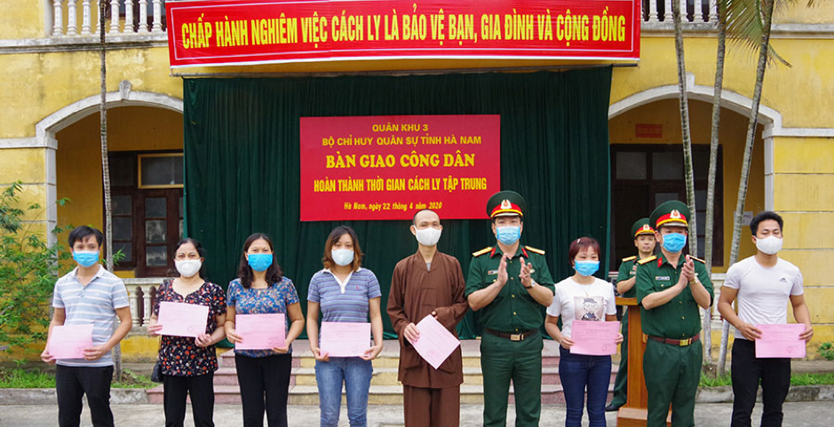 Bộ CHQS tỉnh đã trao giấy chứng nhận và bàn giao những công dân hoàn thành thời gian cách ly tập trung về cho trung tâm y tế các huyện, thành phố, thị xã tiếp tục quản lý theo dõi, kiểm tra sức khỏe theo quy định của ngành y tế trong phòng chống dịch.