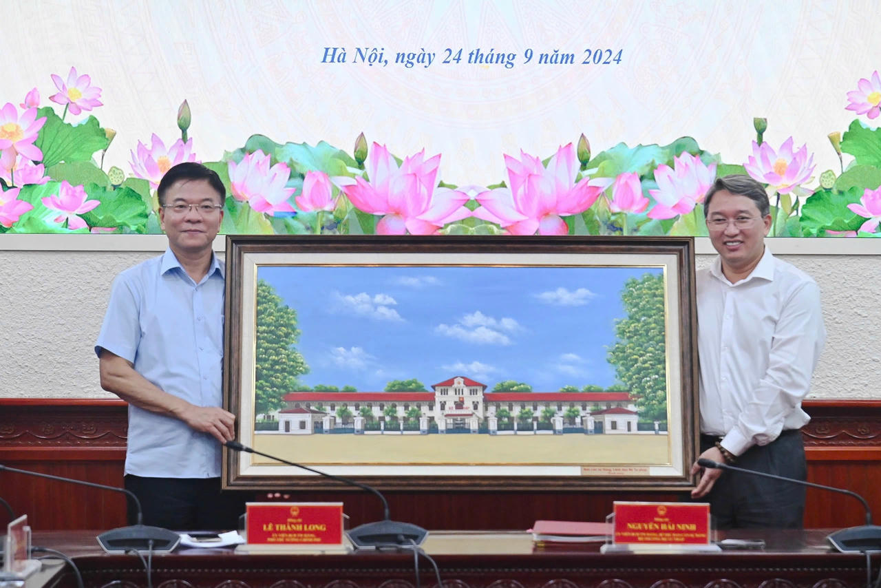 Bàn giao công tác giữa Phó Thủ tướng Lê Thành Long và Bộ trưởng Bộ Tư pháp Nguyễn Hải Ninh