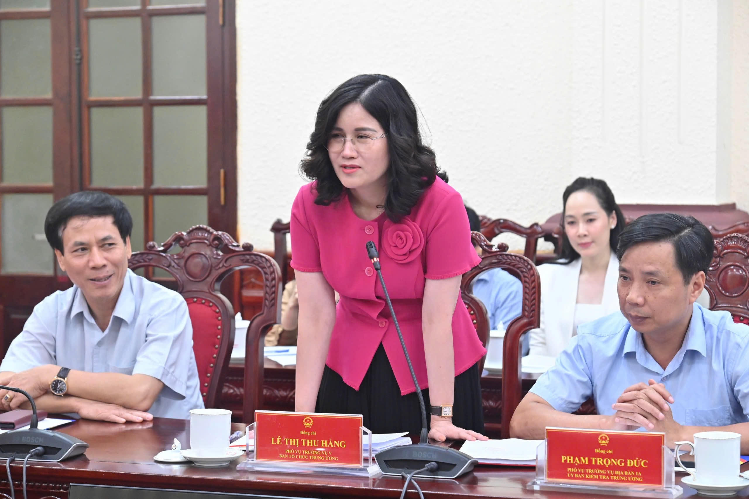 Bà Lê Thị Thu Hằng, Phó Vụ trưởng Vụ V, Ban Tổ chức TW phát biểu tại Hội nghị. |