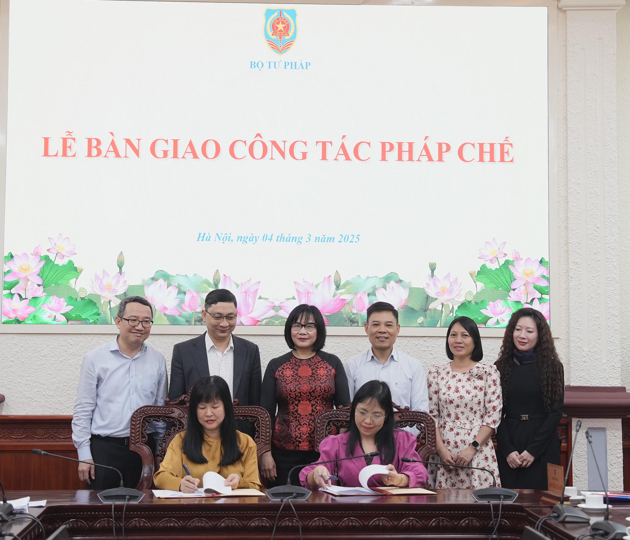Vụ Công tác xây dựng văn bản quy phạm pháp luật và Cục Kiểm tra văn bản và Quản lý xử lý vi phạm hành chính ký biên bản bàn giao. |