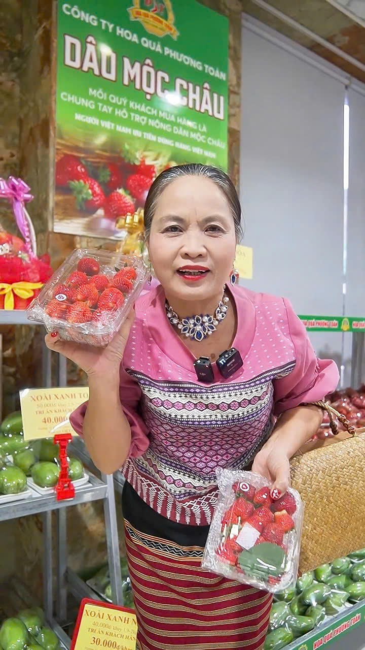 Giám đốc Công ty Hoa quả Phương Toản trong 1 buổi livestream giới thiệu đặc sản Dâu Mộc Châu (Sơn La). |