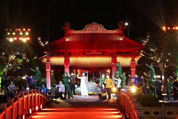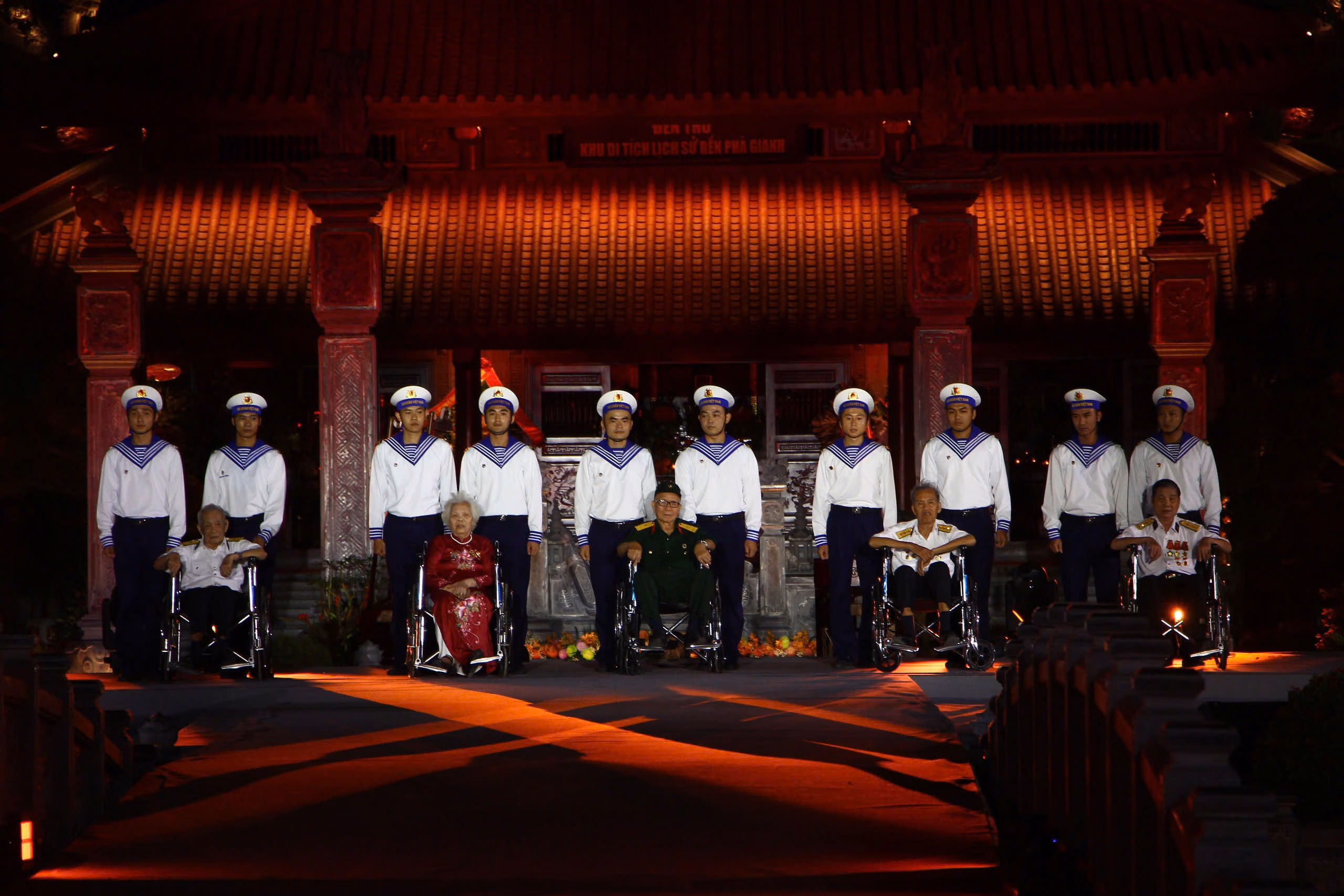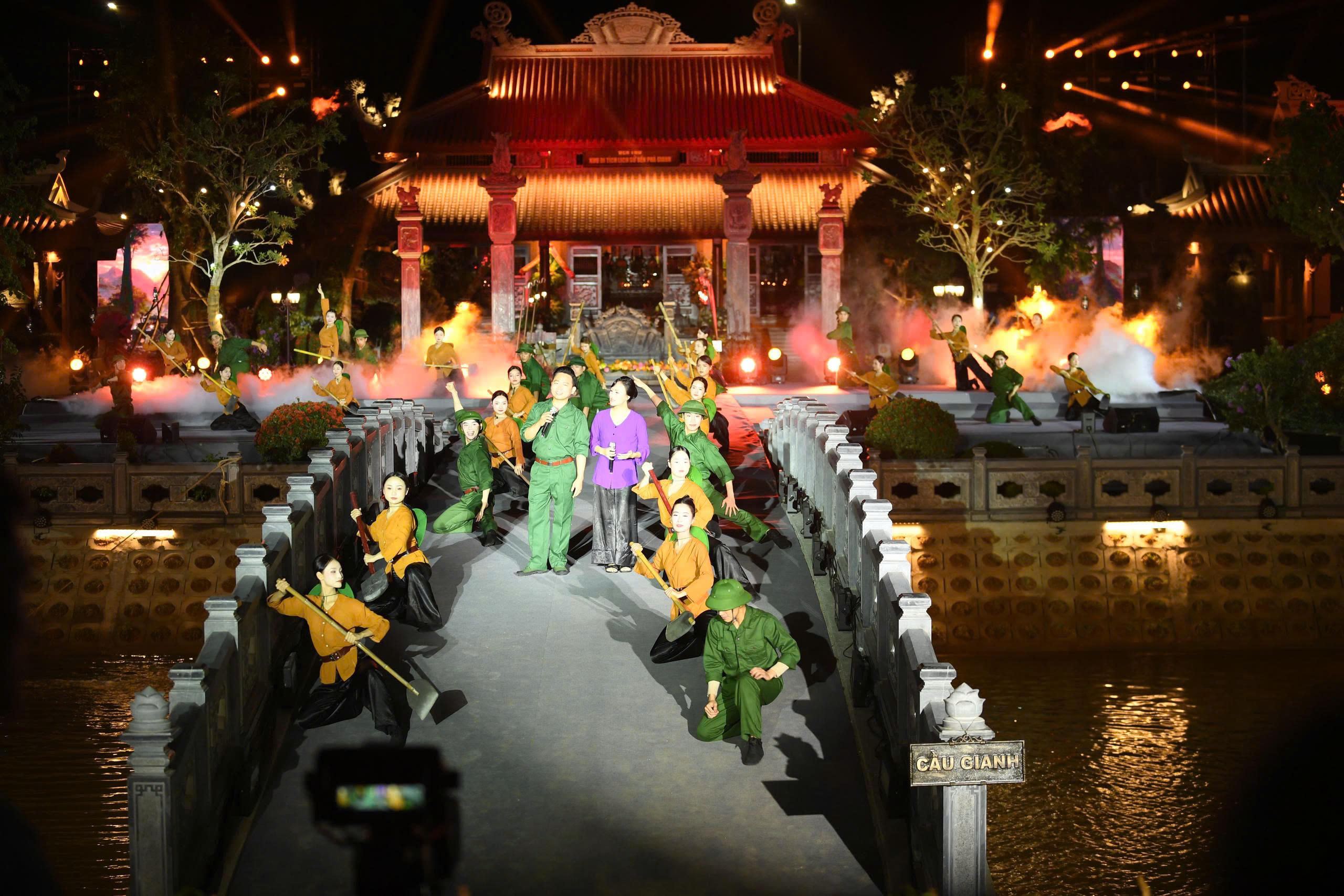 Giữa ánh sáng lung linh của sân khấu thực cảnh bên dòng Gianh, lịch sử như sống dậy qua những hình ảnh chân thực, xúc động. Những con người bình dị - dân công hỏa tuyến, bộ đội, thanh niên xung phong, cùng các lực lượng vũ trang, trong đó có Hải quân Nhân dân Việt Nam - hiện lên không chỉ qua lời kể, mà bằng chính những hoạt cảnh tái hiện sinh động, nơi “bom rơi, đạn nổ” từng là nhịp sống thường ngày.