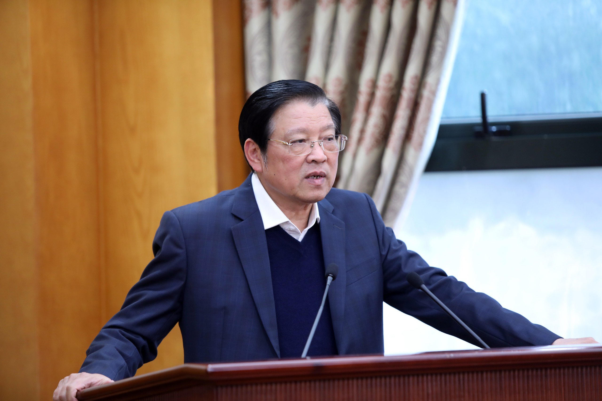 Đồng chí Phan Đình Trạc, Ủy viên Bộ Chính trị, Bí thư Trung ương Đảng, Trưởng Ban Nội chính Trung ương phát biểu giao nhiệm vụ cho các đồng chí được bổ nhiệm |