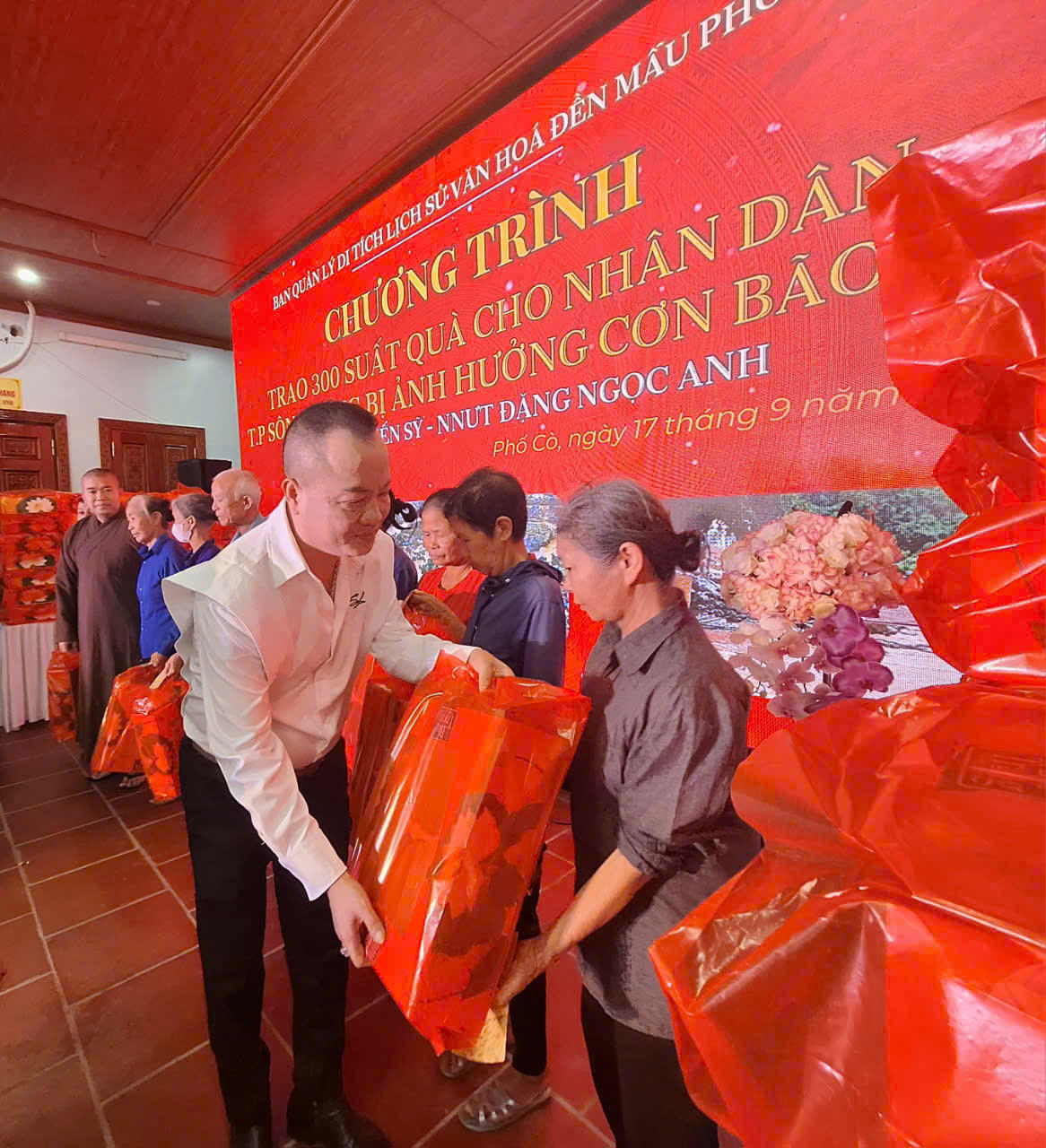 Ban quản lý di tích Đền Mẫu Phố Cò (TP Sông Công, Thái Nguyên) vừa tổ chức lễ trao quà cho Nhân dân phường Phố Cò (TP Sông Công) bị ảnh hưởng bởi cơn bão số 3. Thay mặt Ban quản lý di tích Đền Mẫu Phố Cò, Nghệ nhân ưu tú Đặng Ngọc Anh đã trao 300 suất quà (bát đũa, gạo) và tiền mặt (mỗi hộ 500 nghìn đồng) đến 300 hộ dân.