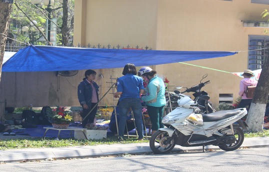 Để chuẩn bị cho ngày Lễ 8/3, ở trước các cổng trường đại học, cao đẳng hoặc ở những nơi có vỉa hè rộng xuất hiện các cửa hàng hoa “di động” sát nhau và ai nấy cũng khá tất bật. Người thì cắm hoa, người trang trí để cho gian hàng của mình nổi bật hơn so với những gian hàng con lại; người thì liên tục tưới nước để giữ hoa được tươi. Đi đâu cũng luôn nghe tiếng chào mời “Mua hoa tặng mẹ đi anh”, “Hoa đẹp ủng hộ mình đi bạn ơi” hay vui tính hơn là “Mua hoa tặng người yêu anh ơi”…