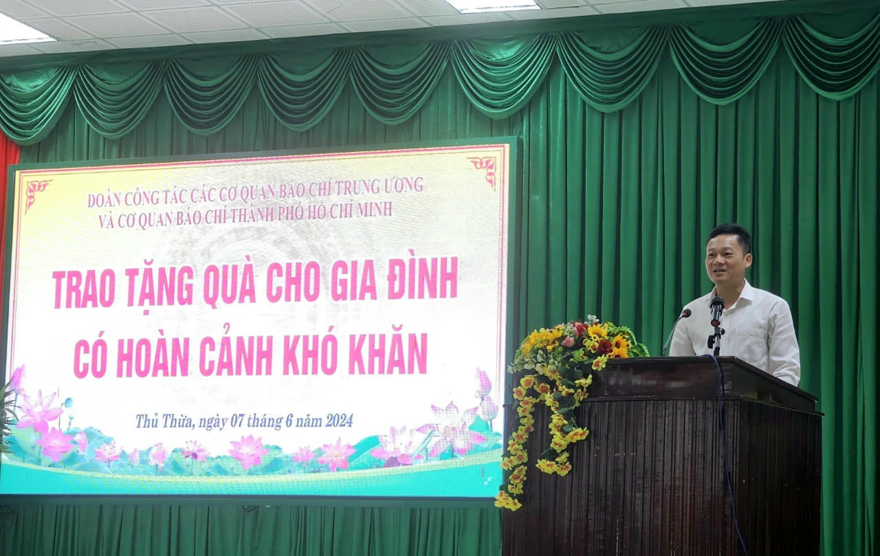 Chiều 7/6, tại huyện Thủ Thừa, tỉnh Long An, Đoàn Cơ quan thường trực khu vực miền Nam, Ban Tuyên giáo Trung ương, các cơ quan báo chí trung ương tại TP Hồ Chí Minh và các cơ quan báo chí TP Hồ Chí Minh đã đến thăm, trao tặng quà cho 100 gia đình có hoàn cảnh khó khăn trên địa bàn huyện này nhân Kỷ niệm 99 năm Ngày Báo chí cách mạng Việt Nam (21/6/1925 - 21/6/2024).