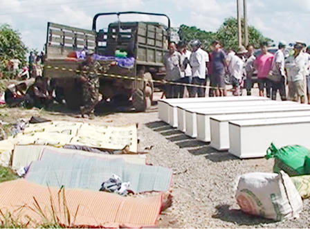 Trước đó, như Báo PLVN đã đưa tin, khoảng 4h30 sáng 2/6, xe khách mang BKS Lào UN 3897 của nhà xe Khánh Đơn chạy từ Thà Khẹc (Lào) trên đường về Nghệ An. Khi đến địa phận huyện Bualapha, tỉnh Khăm Muộn (Lào), cách cửa khẩu Cha Lo (Quảng Bình) khoảng 15 km thì bất ngờ phát nổ. Hậu quả, ít nhất 8 người tử vong tại chỗ, ba người khác bị thương nặng được đưa đi cấp cứu trong tình trạng nguy kịch.