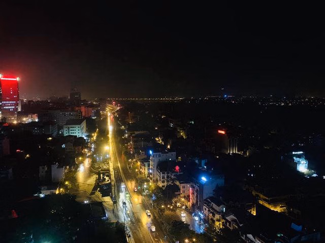 Từ căn hộ nhìn ra thành phố về đêm.
