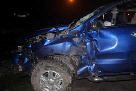 (PLO) - Trong lúc băng qua đường sắt đoạn giao nhau với đường dân sinh, do thiếu quan sát, xe ô tô bị tàu hỏa tông văng xa, hai người trong xe bị thương nặng.