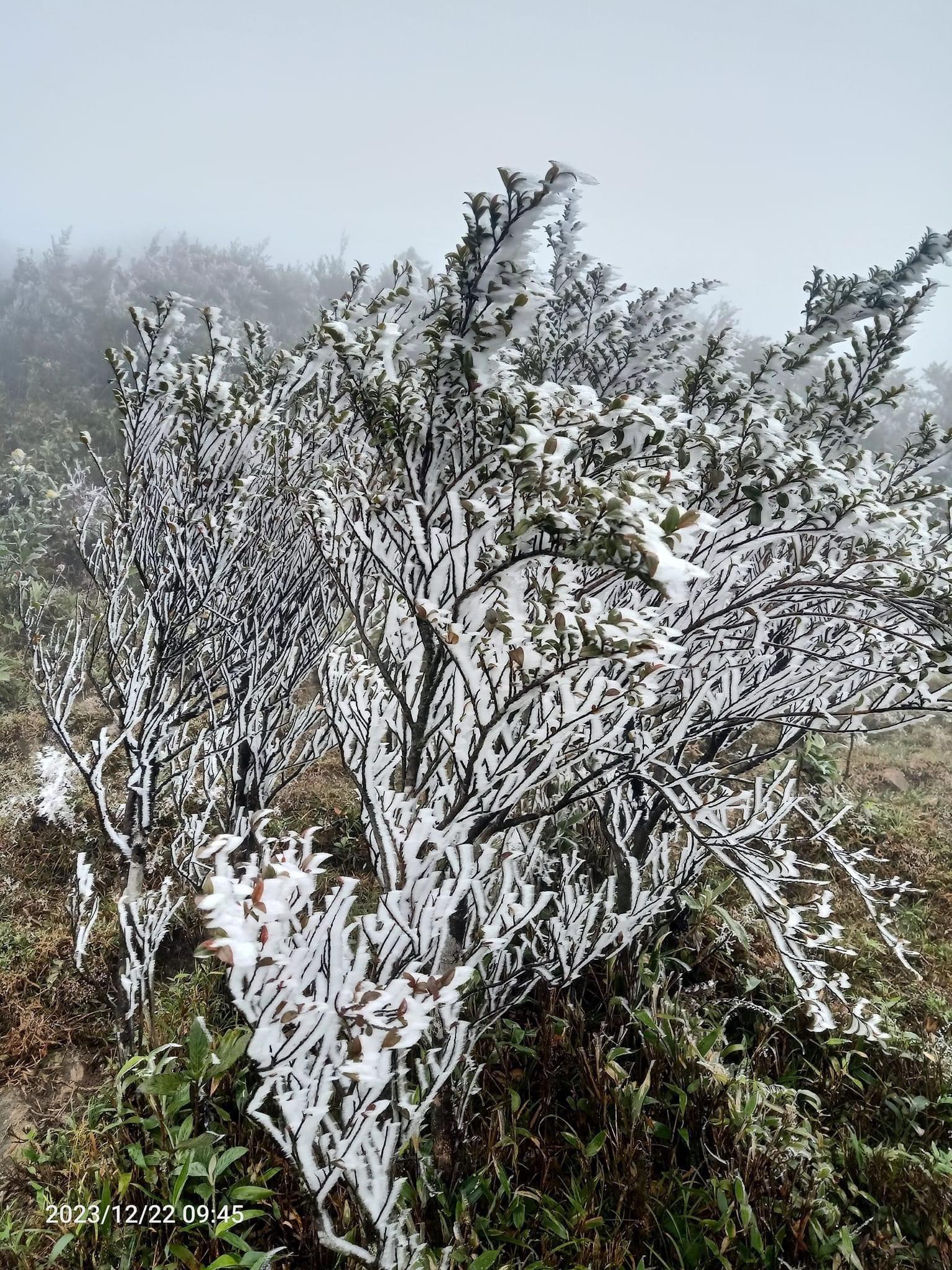 Một số hình ảnh băng tuyết xuất hiện tại đỉnh Fansipan trưa 22/12/2023: