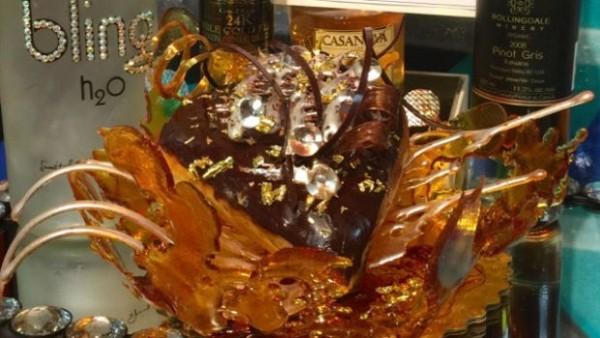 Mỗi chiếc bánh Donutopia được làm trong vòng năm tiếng đồng hồ với nhân kem vị rượu, giấm balsamic thơm sô-cô-la, chai nước khoáng Bling H2O, vô số những viên kim cương to bự làm từ đường và được điểm xuyết bằng những mảnh vàng 24 karat.