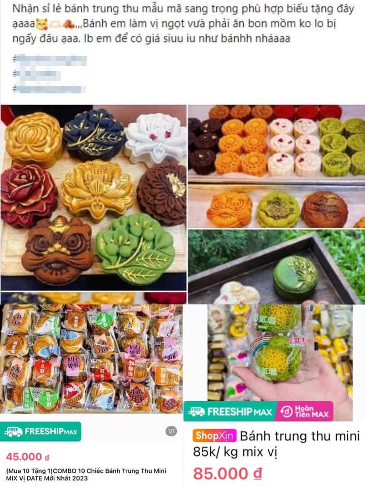 Tại sàn thương mại điện tử Lazada, một gian hàng giới thiệu combo 10 bánh trung thu mini mix vị date mới nhất với giá 45.000 đồng/10 chiếc. Nguồn gốc của bánh tại gian hàng này không thấy đề cập.