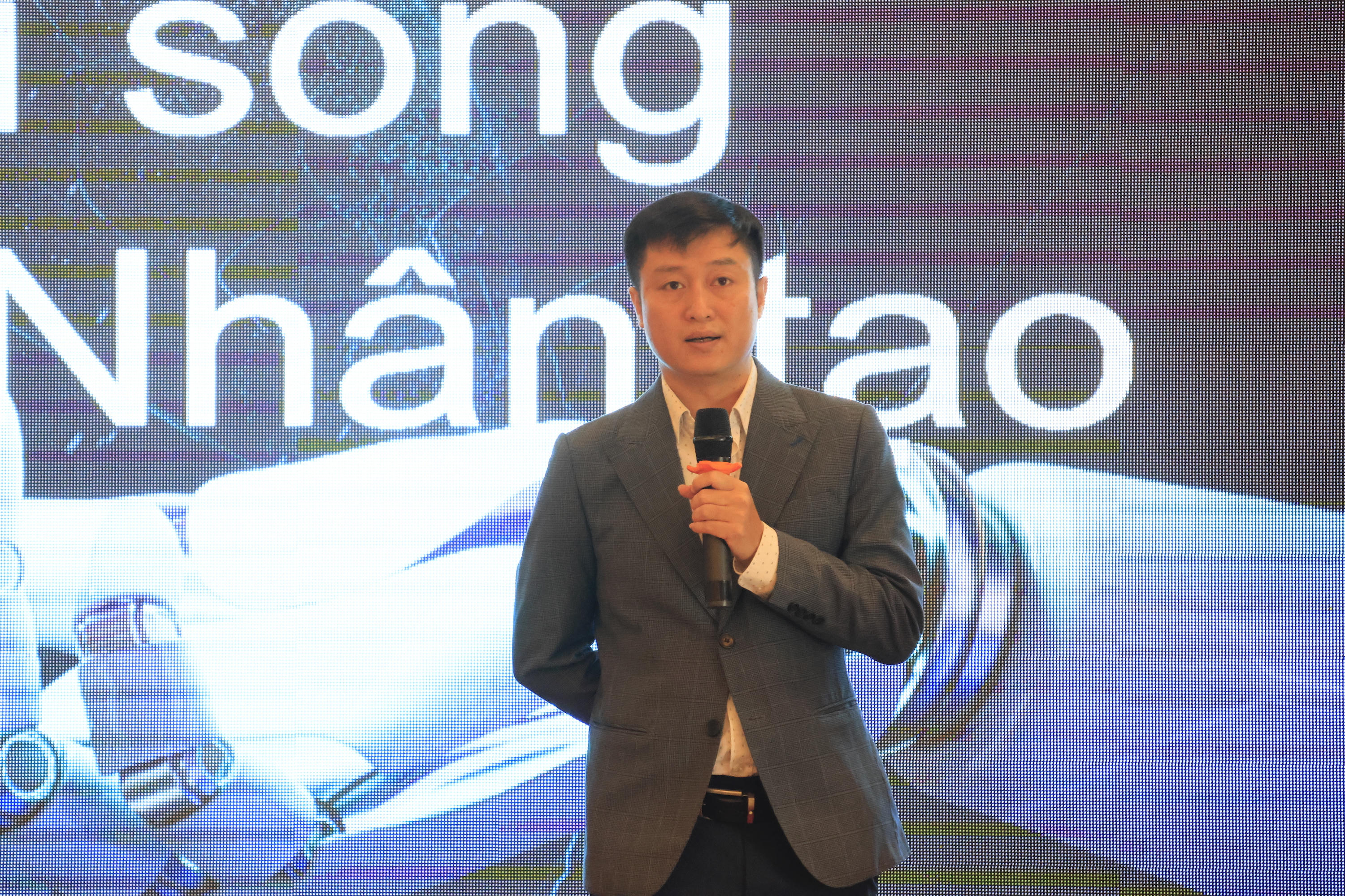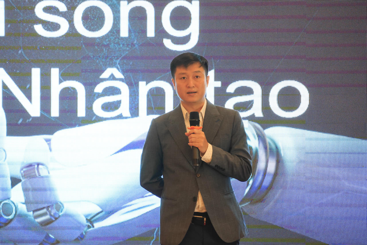 Phó Tổng Biên tập Báo VietnamPlus Nguyễn Hoàng Nhật chia sẻ thông tin về ứng dụng AI trong báo chí. |