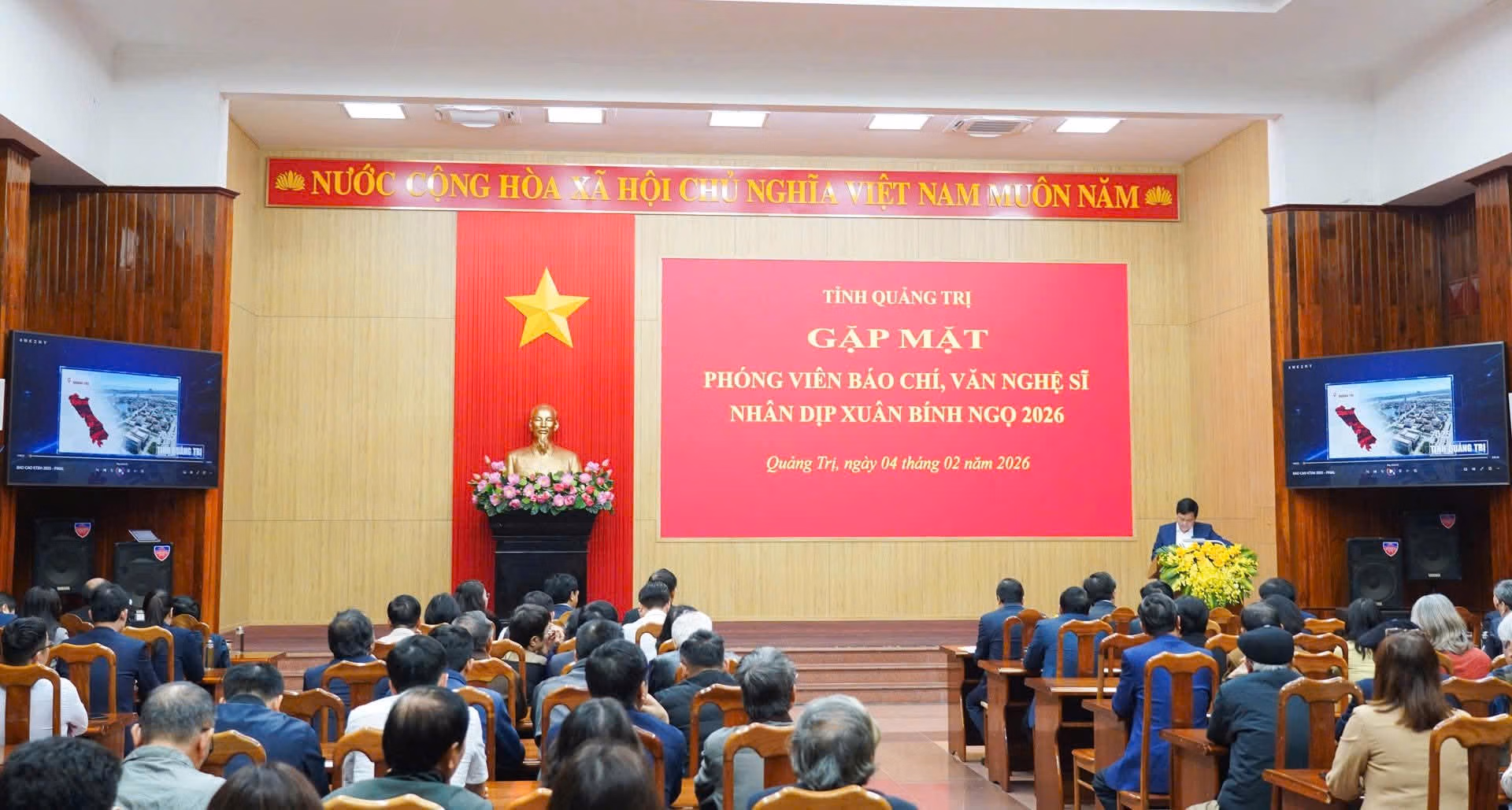 Sáng 4/2, Thường trực Tỉnh ủy Quảng Trị tổ chức gặp mặt đội ngũ phóng viên báo chí, văn nghệ sĩ đang công tác, hoạt động trên địa bàn tỉnh. Buổi gặp mặt là dịp ghi nhận, tri ân những đóng góp của báo chí, văn học - nghệ thuật trong năm qua, đồng thời trao đổi, định hướng công tác tuyên truyền trong năm 2026, năm đầu triển khai các nghị quyết lớn của Đảng.