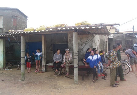 | Người dân xã Nhân Trạch, huyện Bố Trạch (Quảng Bình) ngồi chờ bão trước cửa biển sau khi đã gia cố xong nhà cửa. |