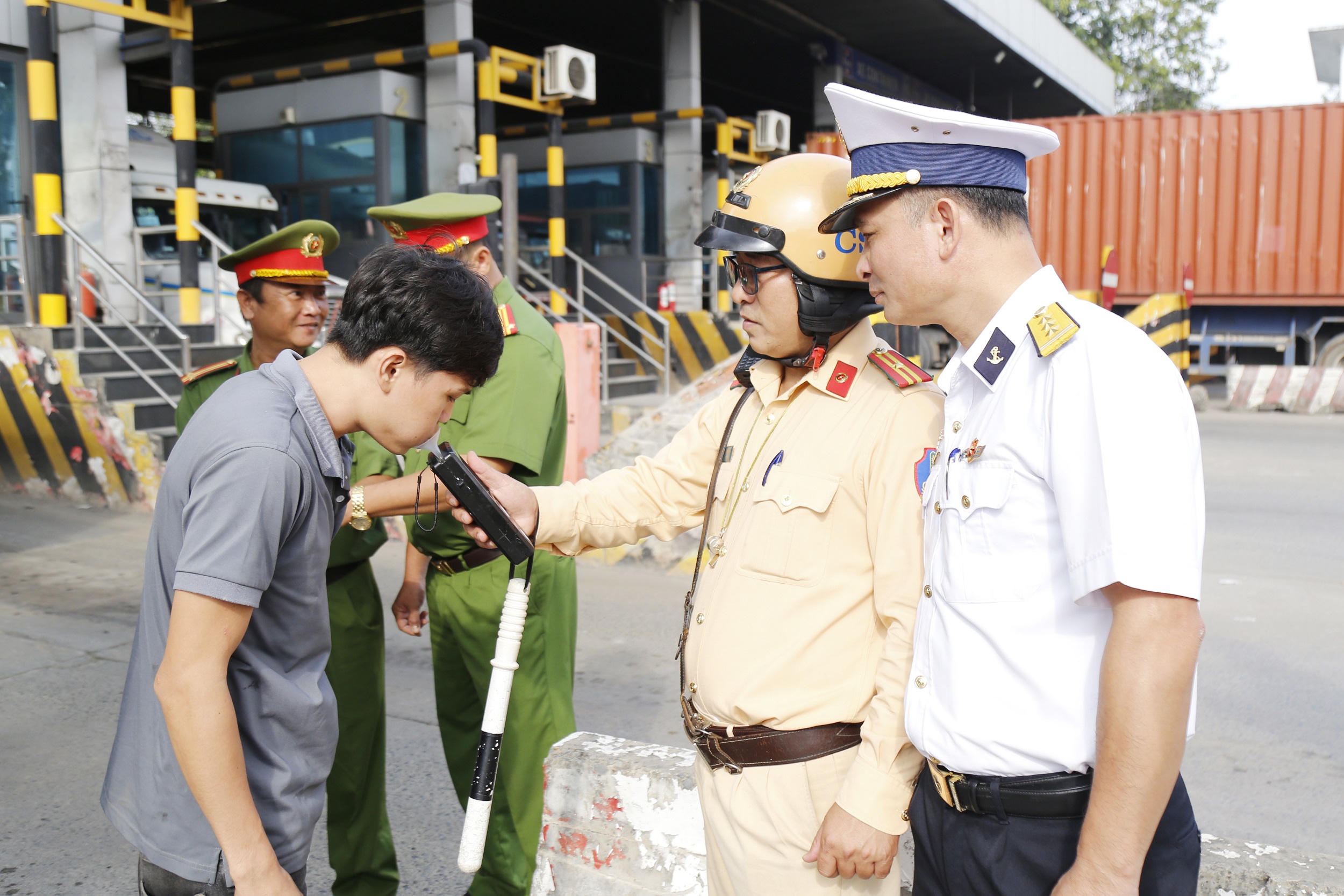 Ngày 31/12, tại TP Hồ Chí Minh, Tổng công ty Tân cảng Sài Gòn phối hợp với Công an TP Hồ Chí Minh; Công an TP Thủ Đức và các lực lượng Biên phòng cửa khẩu, Hải quan cửa khẩu tiến hành kiểm tra hung khí, vật liệu nổ, công cụ hỗ trợ và kiểm tra nồng độ cồn đối với lái xe, phụ xe trên các phương tiện ra, vào cụm cảng Tân cảng Cát Lái.