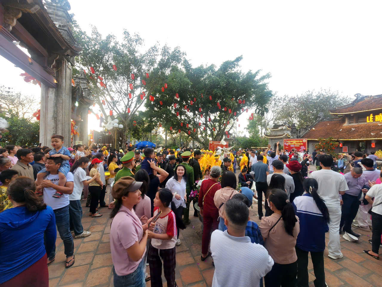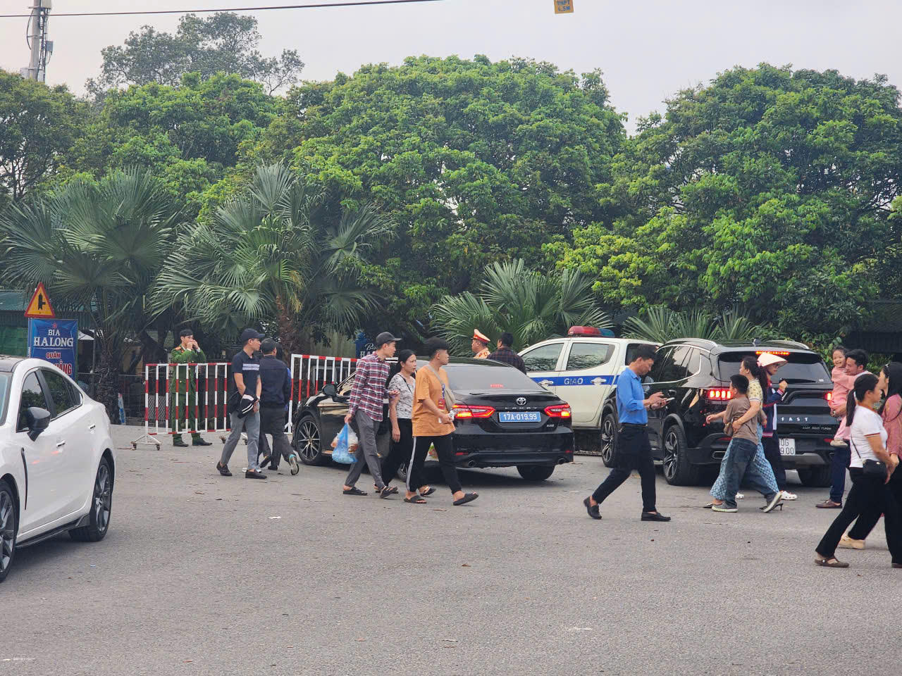 Theo ghi nhận của PV Báo PLVN, lực lượng công an và các đơn vị chức năng đã thiết lập nhiều chốt kiểm soát, phân luồng giao thông tại các tuyến đường dẫn vào khu vực lễ hội. Đến khoảng 16 giờ, toàn bộ các ngả đường vào khu vực bên trong được căng biển cấm phương tiện, chỉ cho phép lực lượng làm nhiệm vụ và đại biểu có thẻ ra vào. Việc kiểm soát chặt chẽ nhằm bảo đảm an toàn cho dòng người ngày càng đông, đồng thời phòng ngừa ùn tắc và các tình huống phát sinh.