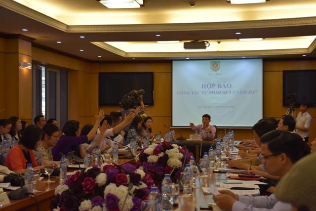 Liên quan đến công tác tư pháp quý I vừa qua, ông Hiển thông tin, trong công tác xây dựng, thẩm định, kiểm tra, xử lý, rà soát văn bản quy phạm pháp luật, Bộ Tư pháp đã tích cực phối hợp với các cơ quan của Chính phủ, Quốc hội hoàn thiện để trình tại kỳ họp thứ 3 Quốc hội khóa XIV thông qua đối với 3 dự án luật và 1 dự thảo Nghị quyết; trình Chính phủ, Thủ tướng Chính phủ 3/4 văn bản, đang tiếp tục hoàn thiện để trình Nghị định về tổ chức và hoạt động của Thừa phát lại; đã đẩy nhanh tiến độ thực hiện các nhiệm vụ theo các kế hoạch triển khai thi hành các luật sắp có hiệu lực thi hành: Luật Đấu giá tài sản, Luật Tiếp cận thông tin.
