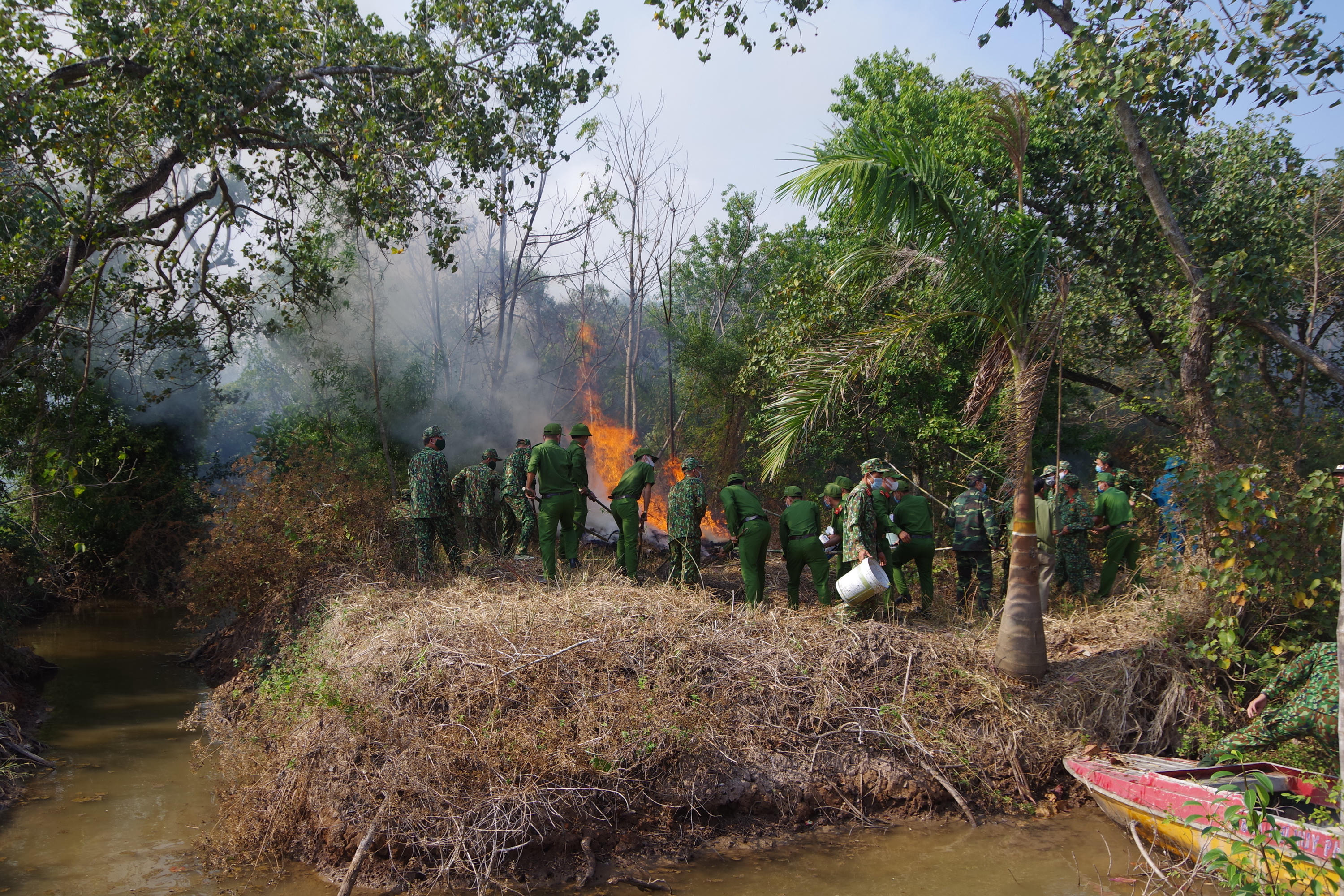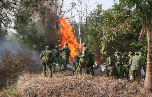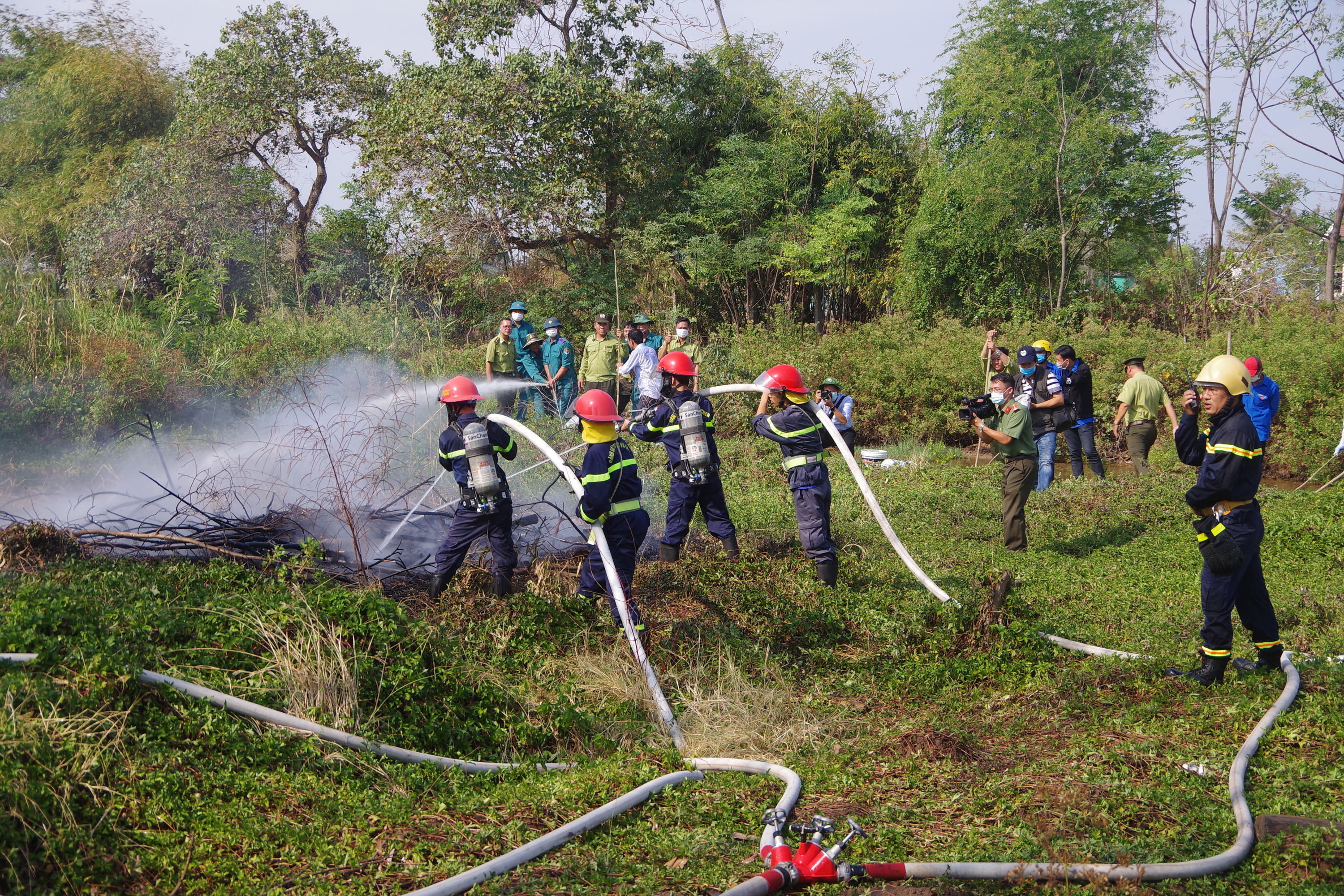Hình ảnh diễn tập chữa cháy rừng tại Khu bảo tồn loài – sinh cảnh - Vườn chim Bạc Liêu