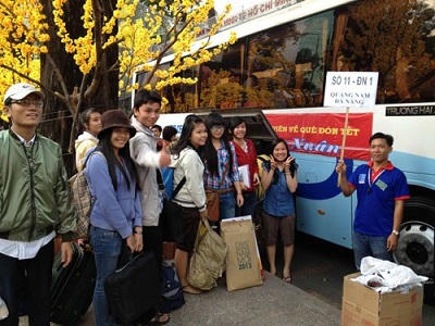 Gia đình khá giả thì có nhiều cách để về quê. Còn với sinh viên, công nhân nghèo, không phải ai cũng có điều kiện để thuê xe riêng nên nhiều chương trình tổ chức xe hỗ trợ đồng hương đã được thành lập. Anh Lê Trung, Trưởng nhóm tổ chức chương trình xe tết hội đồng hương Nghệ Tĩnh chia sẻ: “Cũng là người xa quê ra Hà Nội học tập rồi ở lại làm việc, tôi rất hiểu nỗi vất vả, khổ sở của hàng nghìn sinh viên cùng quê phải lo vé xe, vé tàu mỗi khi năm hết tết đến. Thậm chí, dù phải mua vé xe với giá rất cao, các bạn còn tiếp tục phải chịu cảnh bị nhà xe nhồi nhét khách dọc đường. Vì thế, đã nhiều năm qua tôi và các bạn trong nhóm thực hiện chương trình hỗ trợ xe tết cho đồng hương. Chúng tôi liên hệ hợp đồng xe, bán vé với giá ưu đãi và cam kết không có chuyện nhồi nhét khách”.