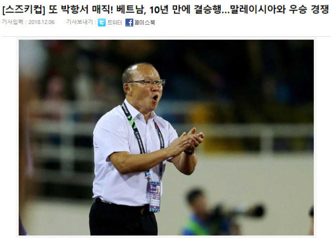 Trong khi đó, Tờ Sportalkorea cũng giành những mỹ từ để tung hô nhà cầm quân 59 tuổi sau khi giúp tuyển Việt Nam vào chung kết AFF Cup sau 10 năm đợi chờ.