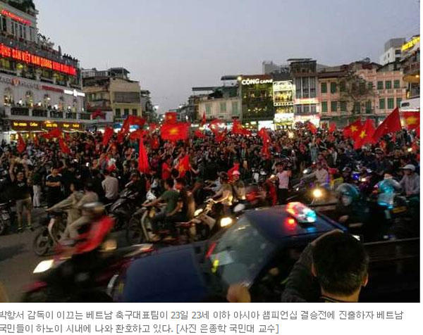 Còn Yonhap dùng từ "Hiddink của Việt Nam" một lần nữa để nói về tài nghệ HLV Park Hang Seo cũng như sự ngưỡng mộ, biết ơn của người Việt Nam dành cho ông. Tờ này mô tả chi tiết không khí bóng đá, tình yêu với màu cờ sắc áo có ở mọi nẻo đường, quán cafe, nhà hàng, cơ quan,... của người Việt trong ngày U23 Việt Nam thi đấu, lập thêm kỳ tích...