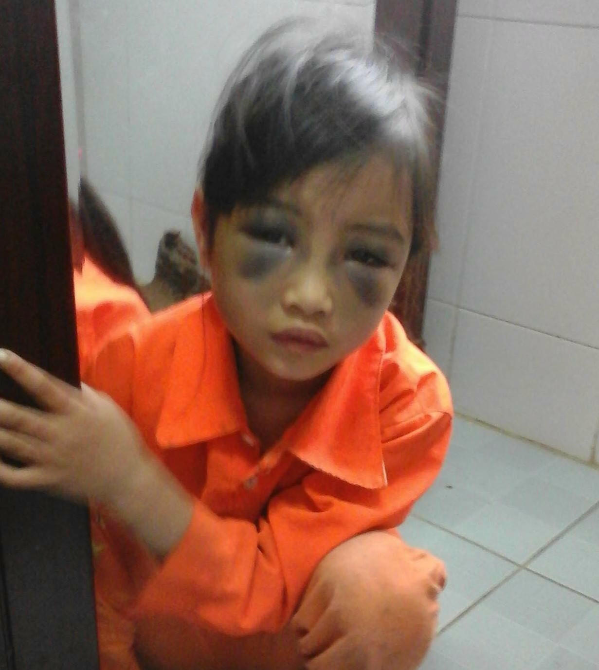 Phàn Chung Thủy (6 tuổi, học sinh Trường tiểu học xã Phìn Ngan, huyện Bát Xát, Lào Cai) bị giáo viên chủ nhiệm đánh sưng mắt, tím mặt |