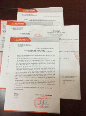 Nội dung hợp đồng bảo hiểm thể hiện loại hình bảo hiểm toàn bộ với mức trách nhiệm bảo hiểm đúng với số tiền 550 triệu đồng mua xe. Toàn bộ tổng kinh phí mua bảo hiểm hơn 9 triệu đồng. Điều khoản bổ sung: Bảo hiểm AAA sẽ bồi thường cho người được bảo hiểm thiệt hại vật chất xe và không áp dụng bất kỳ một khoản khấu trừ và/hoặc khấu hao những vật tư, phụ tùng bị thiệt hại do tai nạn thuộc trách nhiệm bảo hiểm và được thay mới (100%). Hợp đồng nêu điều kiện bảo hiểm theo Quyết định số 75/2012 do Tổng Giám đốc Công ty Bảo hiểm AAA ban hành.