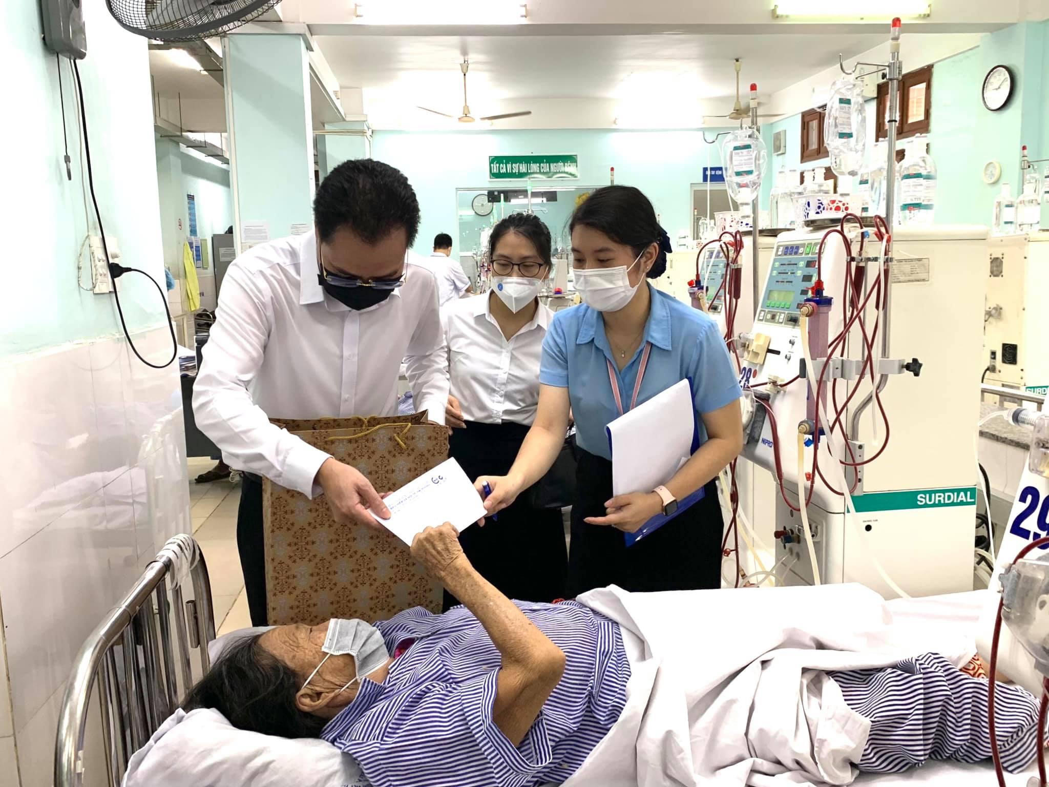 Sáng 21/9, Đoàn công tác của Bảo hiểm xã hội TP do ông Bùi Minh Đức - Phó Giám đốc làm trưởng đoàn đã đến thăm và tặng quà cho các bệnh nhân có hoàn cảnh khó khăn, đang điều trị bệnh dài ngày tại Khoa Thận nhân tạo và Khoa ung bướu Bệnh viện Hữu nghị Việt Tiệp.