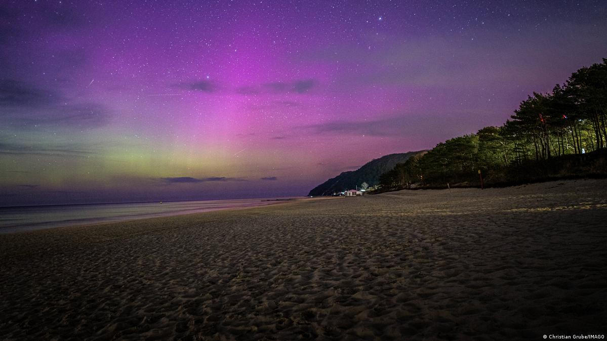 | Bắc cực quang tỏa sáng trên bầu trời đêm ở Đức vào ngày 10/5. Ảnh: Christian Grube/IMAGO. |