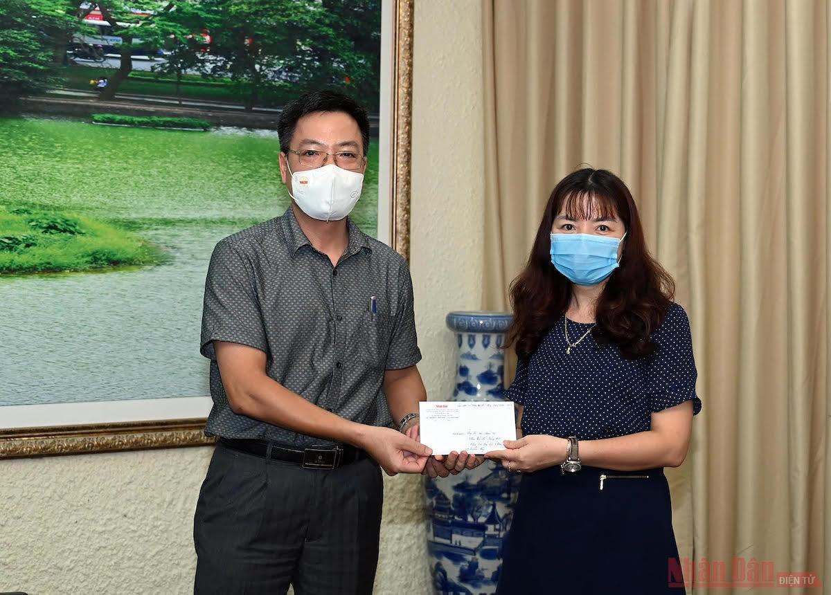* Trong đợt này, thông qua Ủy ban Mặt trận Tổ quốc TP Hồ Chí Minh, Báo Nhân Dân tiếp tục trao số tiền 300 triệu đồng, nhằm chia sẻ, hỗ trợ những người dân TP Hồ Chí Minh đang gặp khó khăn do ảnh hưởng của dịch bệnh COVID-19.