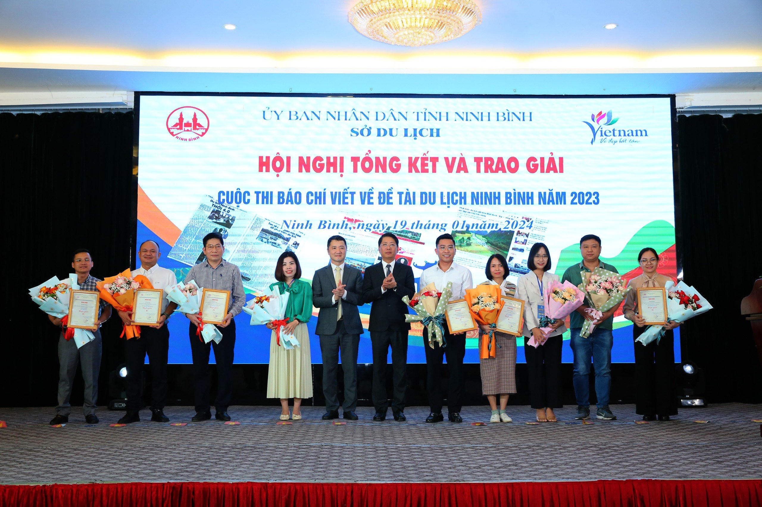 (PLVN) - Ngày 19/1/2023, tại thành phố Ninh Bình, Sở Du lịch tỉnh Ninh Bình đã tổ chức Lễ trao giải Cuộc thi Báo chí viết về đề tài du lịch Ninh Bình năm 2023. Qua cuộc thi nhằm tuyên truyền, giới thiệu nét đẹp về văn hóa, cảnh quan thiên nhiên, danh lam thắng cảnh, các sản phẩm du lịch đặc trưng, xúc tiến quảng bá thương hiệu điểm đến du lịch Ninh Bình, góp phần đưa du lịch Ninh Bình trở thành điểm đến an toàn, chất lượng, hấp dẫn…