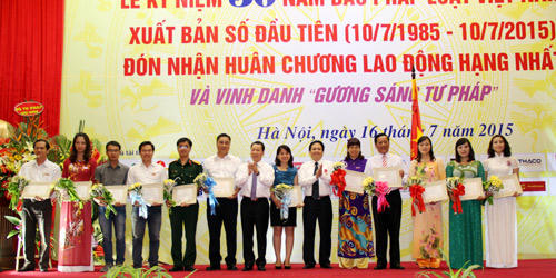 Tặng Cờ thi đua của Chính phủ cho báo Pháp luật Việt Nam, tặng danh hiệu Chiến sỹ Thi đua Toàn quốc cho ông Đào Văn Hội, Tổng biên tập báo Pháp luật Việt Nam. Tặng thưởng Huân chương lao động hạng ba cho ông Đặng Ngọc Luyến, Phó Tổng biên tập Báo Pháp luật Việt Nam và ông Vũ Hoàng Diệp, Phó Tổng biên tập báo Pháp luật Việt Nam.