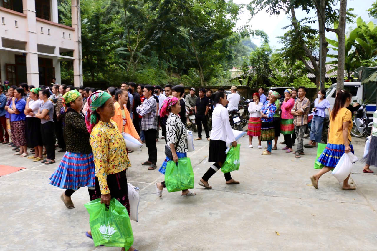 Những phần quà được đoàn Báo Pháp luật Việt Nam gửi tận tay bà con xã Thạch Lâm (Ảnh: Thanh Tùng) |