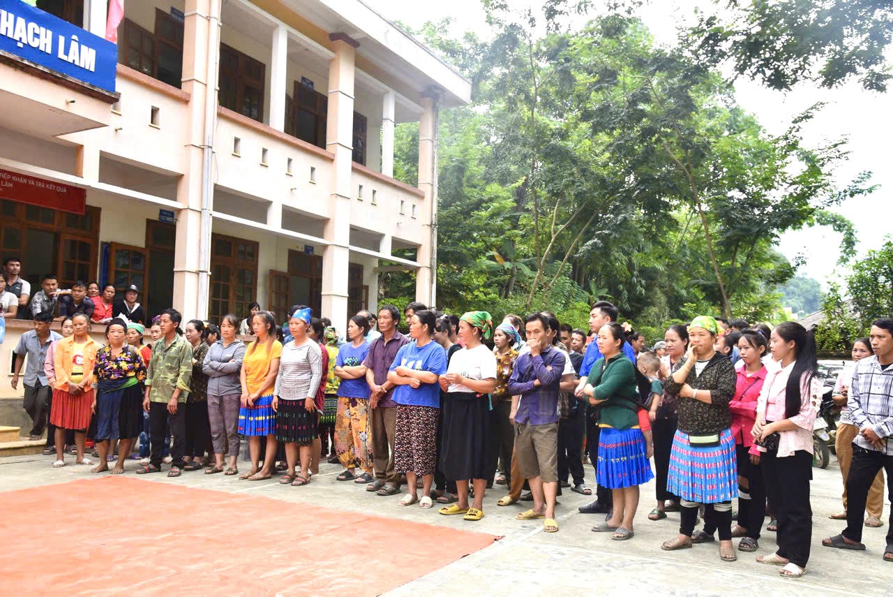 Người dân xã Thạch Lâm có mặt từ sáng sớm để nhận những phần quà mà Đoàn từ thiện Báo Pháp luật Việt Nam trao tặng (Ảnh: Thanh Tùng) |