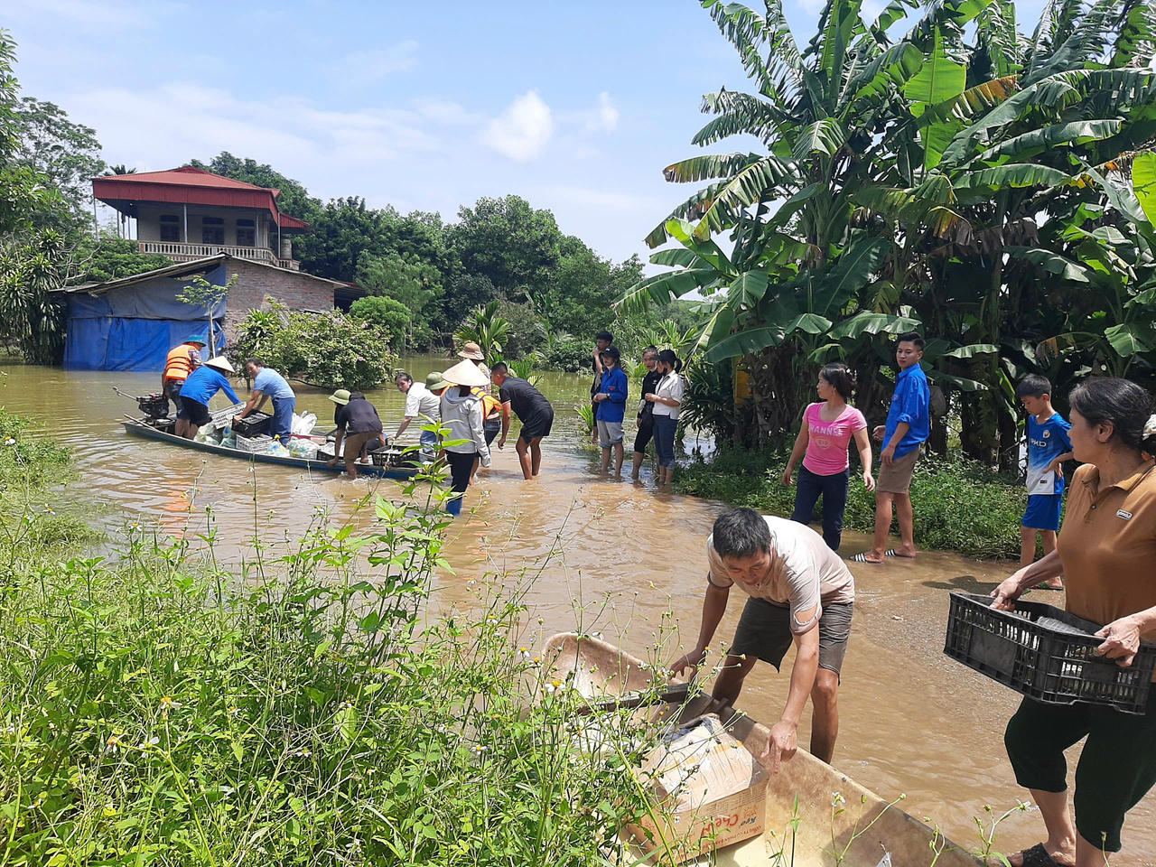 Các nhu yếu phẩm được chuyển đến người dân xã Đan Thượng |