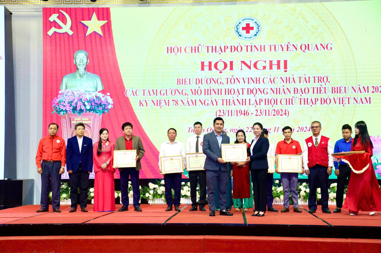 Nhân dịp này, Hội CTĐ tỉnh Tuyên Quang tặng Giấy khen cho 14 tập thể và 20 cá nhân có thành tích xuất sắc và tôn vinh 78 nhà tài trợ tiêu biểu năm 2024. Đồng thời, UBND tỉnh Tuyên Quang tặng Bằng khen cho 10 tập thể và 4 cá nhân có thành tích xuất sắc trong công tác từ thiện, nhân đạo trên địa bàn tỉnh năm 2024, trong đó có Báo Pháp luật Việt Nam.