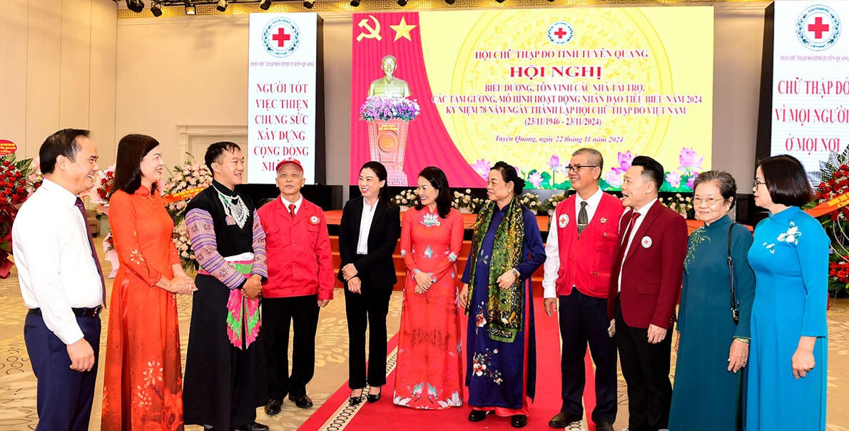 Sáng 22/11, tỉnh Tuyên Quang tổ chức Hội nghị biểu dương, tôn vinh các nhà tài trợ, các tấm gương, mô hình hoạt động nhân đạo tiêu biểu nhân kỷ niệm 78 năm ngày thành lập Hội Chữ thập đỏ (CTĐ) Việt Nam (23/11/1946 - 23/11/2024).