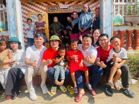 Nhóm phóng viên Báo PLVN chụp ảnh cùng các em nhỏ tại huyện Bắc Hà, tỉnh Lào Cai. |