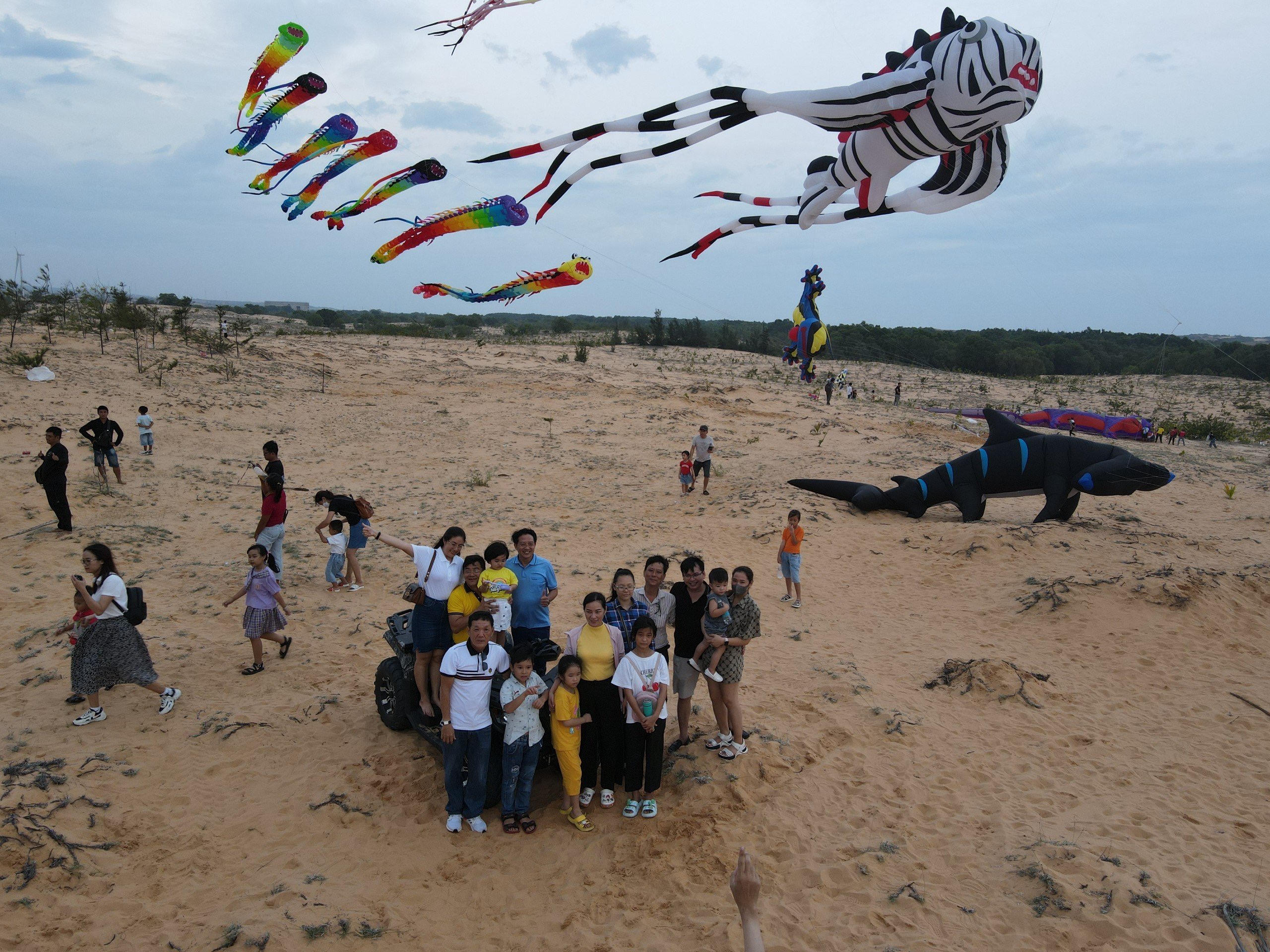 Kỳ bay thử trùng với kỳ nghỉ cuối tuần, khiến hàng ngàn lượt khách về đây trải nghiệm diều và check in, tìm những bức ảnh đẹp.